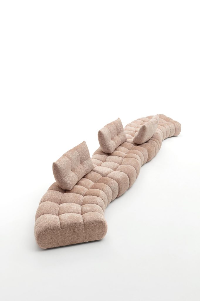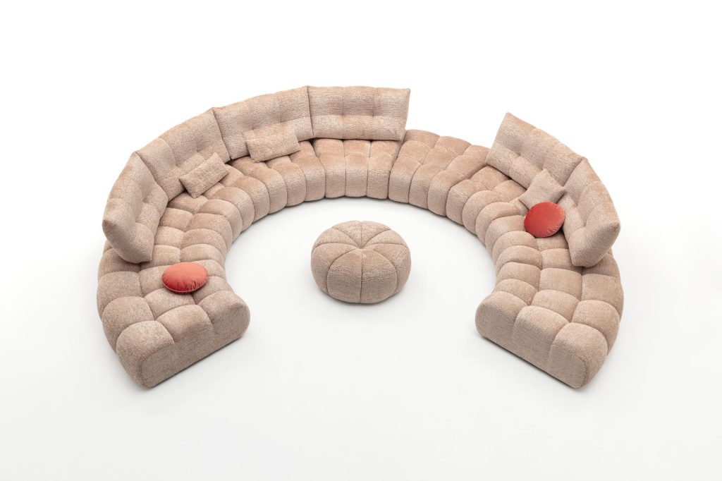 T-Moon è profondamente modulare: la possibilità di combinare elementi lineari o trapezoidali consente di creare composizioni curve o circolari, ideali per chi desidera un ambiente dinamico e conviviale. Questa flessibilità lo rende perfetto non solo per spazi domestici, ma anche per ambienti pubblici o contract, dove comfort ed estetica devono convivere in equilibrio.