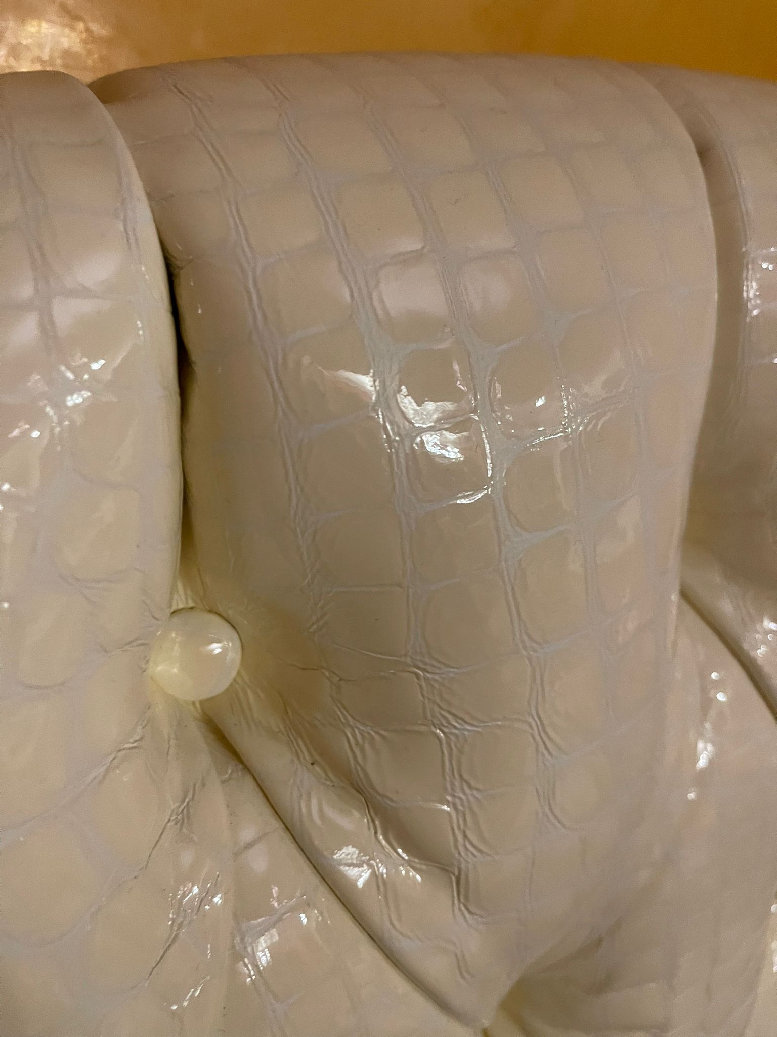 LETTO L 183 P 210 H 42/150 COLL.INTO THE NIGHT COMPOSTO DA: 01 ART.03.84.063 KNOSSOS TESTATA 01 ART.03.84.073 KNOSSOS GIROLETTO IMBOTTITO IN VERA PELLE BIANCA LUCIDA STAMPATA TARTARUGA CAT.C GAMBE TIPO C IN BAGNO ARG