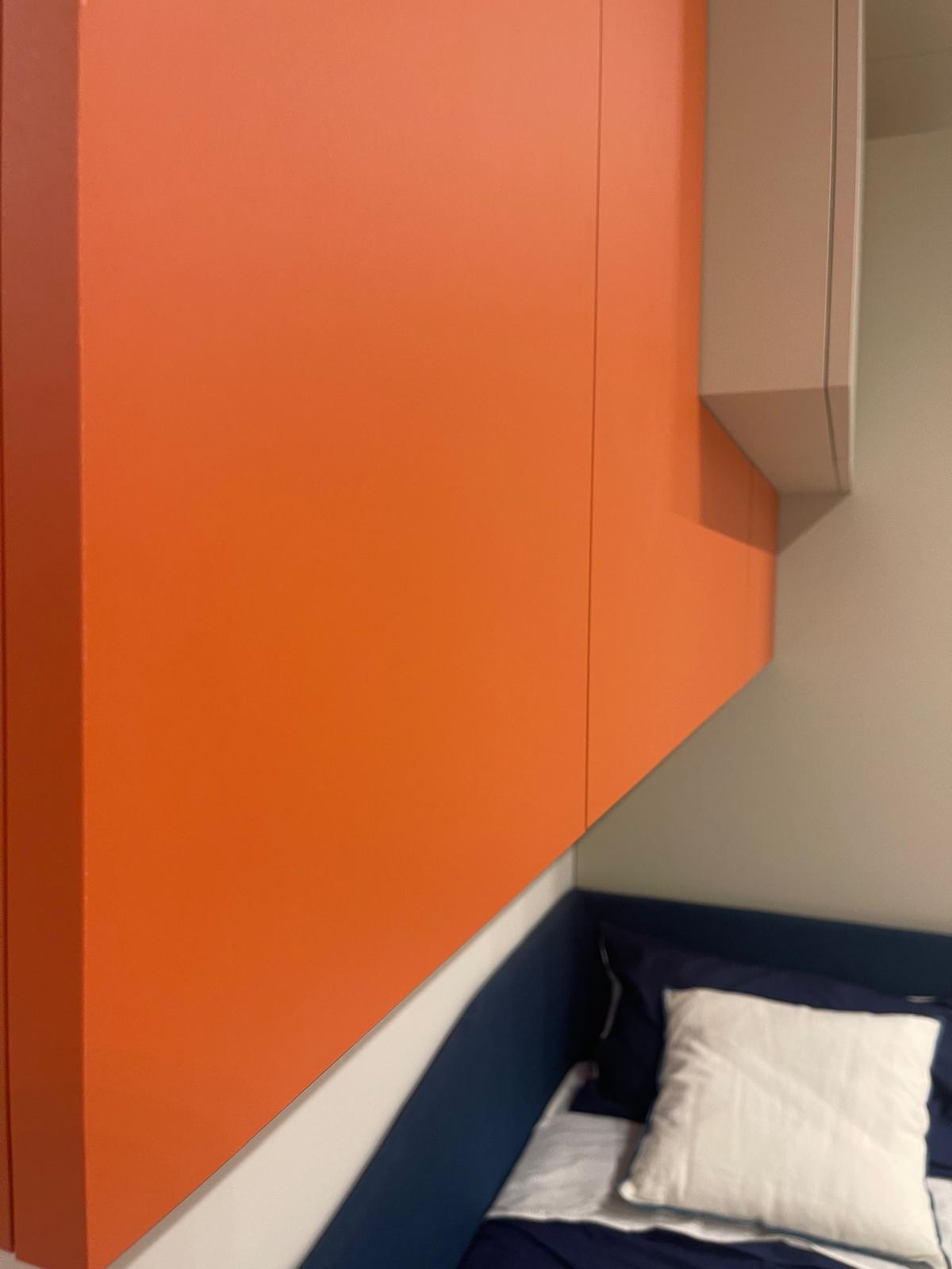 Le finiture Canapa, Mare e Papaya creano un mix cromatico fresco e contemporaneo, capace di rendere la cameretta luminosa, giovane e sempre piacevole da vivere.