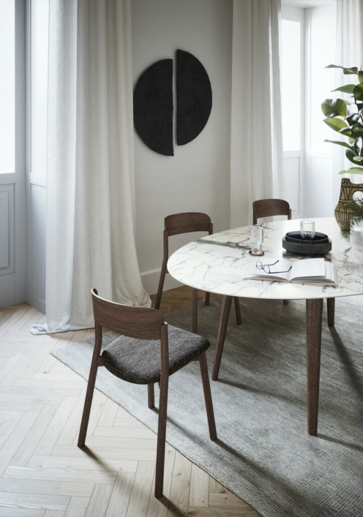 Ci sono sedie che si limitano a completare un tavolo, e poi ci sono sedie che diventano protagoniste dello spazio. Ellen di Novamobili, disegnata dallo studio e-ggs, appartiene alla seconda categoria: un complemento d’arredo capace di unire eleganza, comfort e versatilità in una forma equilibrata e armoniosa.