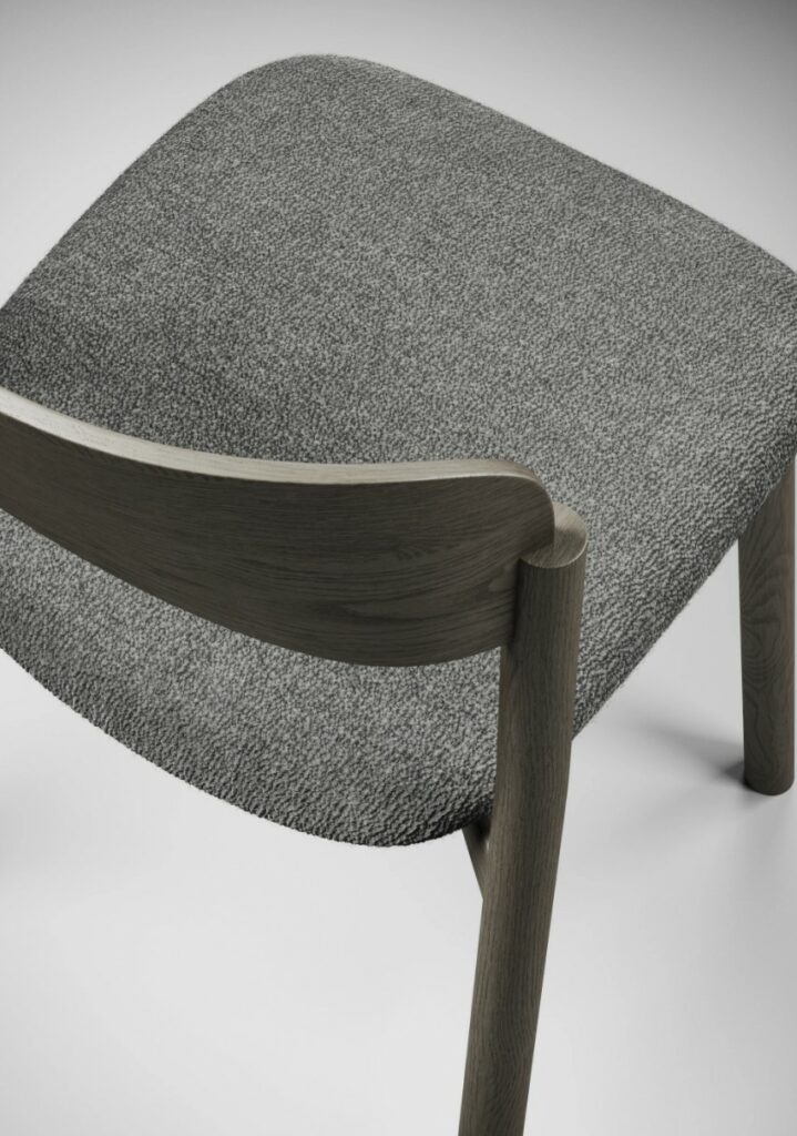 La sua struttura in legno racchiude la solidità di un materiale naturale e vivo, mentre la seduta imbottita e lo schienale curvo trasmettono un’immediata sensazione di accoglienza. Ogni dettaglio è pensato per offrire comfort e sostegno, trasformando anche i momenti più quotidiani – una colazione, una cena in famiglia, un pomeriggio di lavoro al tavolo – in esperienze piacevoli e rilassate.