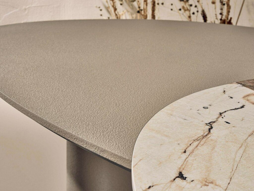 Le linee amorfe e fluide del tavolo Lymph evocano l’idea del movimento, come se il materiale stesso avesse preso forma seguendo un ritmo naturale, libero da schemi. Le curve morbide e le proporzioni equilibrate raccontano una ricerca estetica profonda, che supera la funzionalità per trasformarsi in pura espressione di stile.